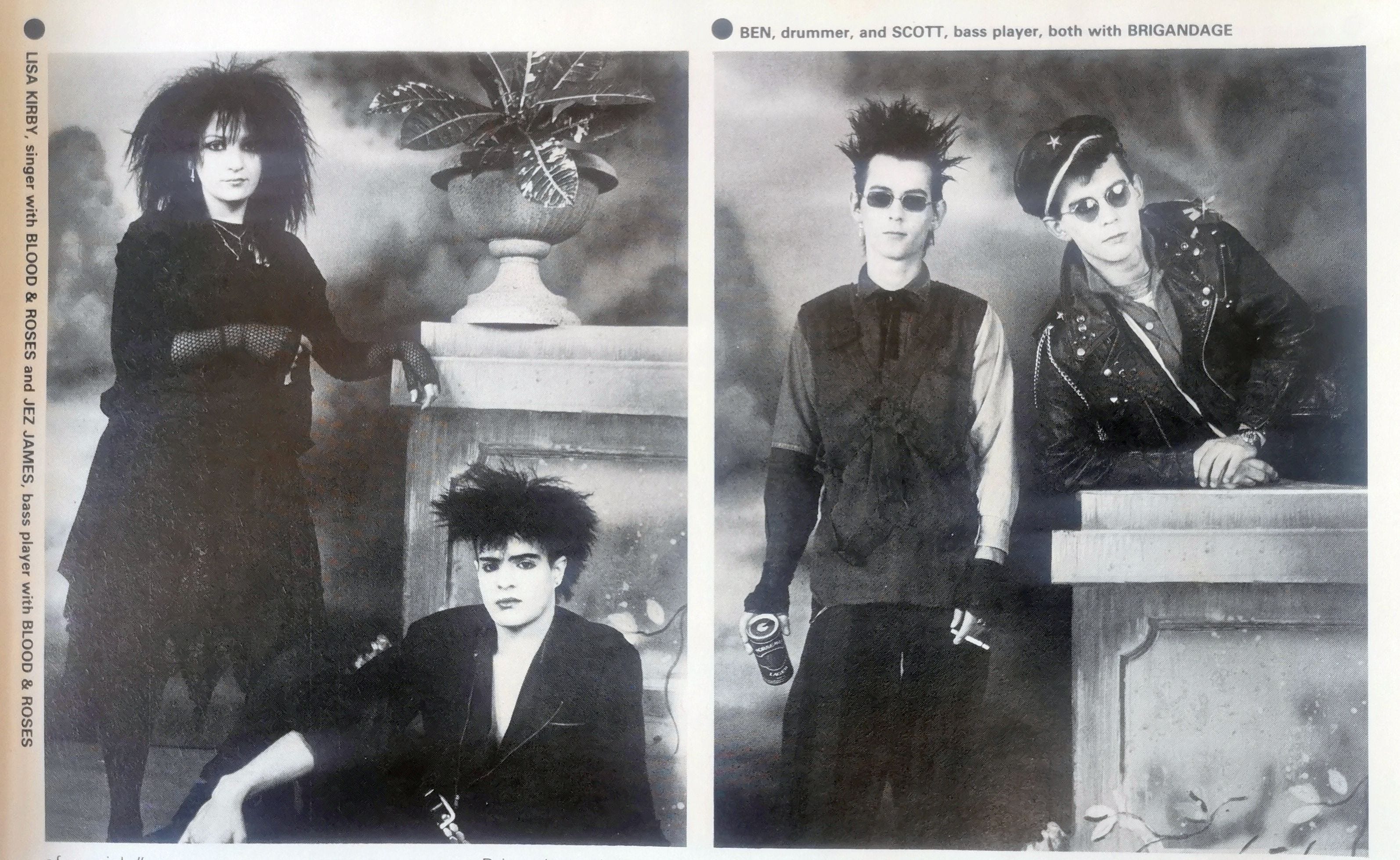 Fast forward a couple of years. The Leeds/York photo-feature in i-D issue 14 (autumn 1983) captures the maturing and dovetailing-of-scenes look perfectly, complete with graveyard and church backgrounds, even though the truncated g-word is not yet in use. An attempt to coalesce a music, look and scene briefly flickered in early 1983 with the ‘positive punk’ genre, a claiming originally in NME by journalist Richard North based around a handful of London-based bands such as Brigandage, Blood and Roses and Ritual. A more visual and style-oriented version of the same article appeared across multiple pages of The Face in April 1983. Even though this almost pre-packaged new scene was not labelled as goth, it is possibly the closest homogenised precursor as to what would follow later in 1983. Positive punk is one strand of the disputed timeline of the goth subculture – in terms of both coming-to-be and naming – that catches out many historians, and I revisit it in detail in the longer essay on haute-goth fashions.